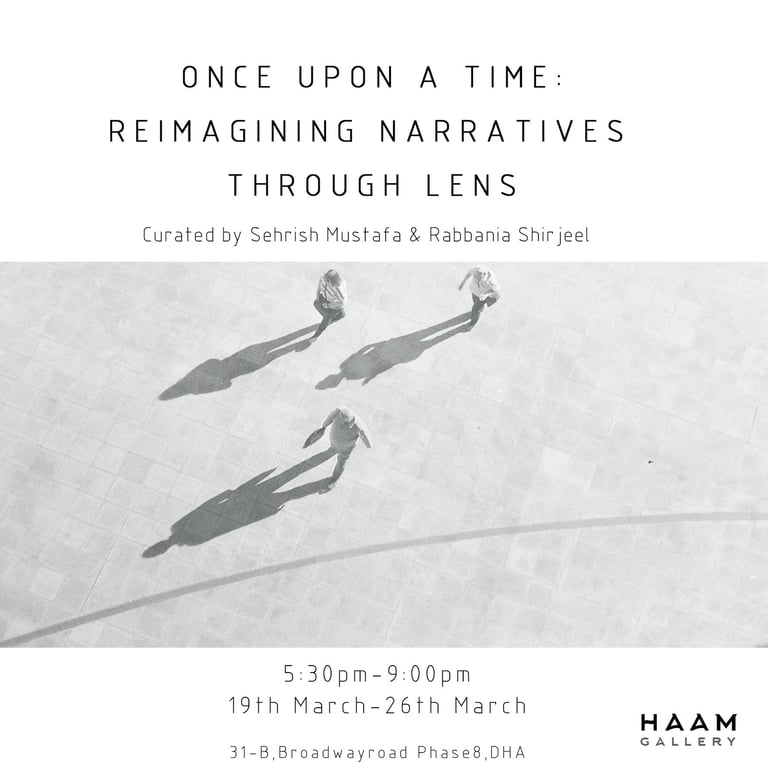 "Once Upon a Time: Reimagining Narratives", curated by Sehrish Mustafa and Rabbania Shirjeel. This exhibition explores the power of image-making as a storytelling medium, featuring a diverse range of artists.